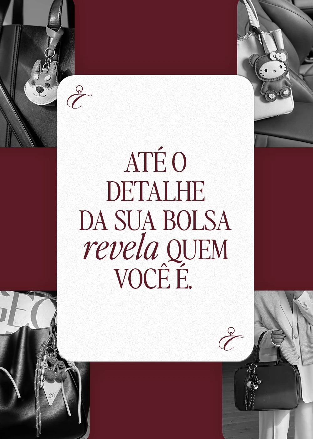 Amados pelas suas várias formas de usar, os nossos bag charms realçam qualquer bolsa ou porta-chaves, mantendo-os elegantemente organizados e luxuosos.